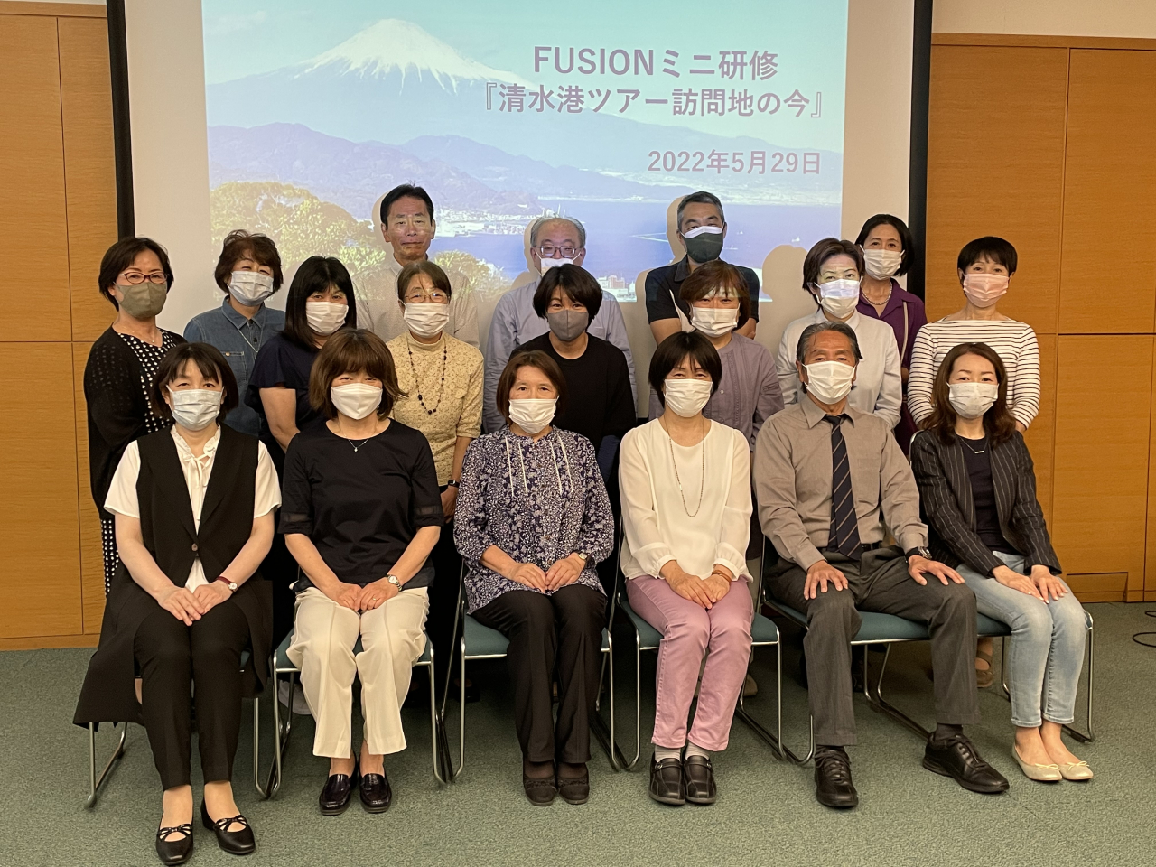 3月17日(土),楽しみにしていたフュージョンの富士宮研修が開催されました。会員8名とお試し参加者1名、研修のお手伝いをしてくださったアメリカ人パメラさんの10名が参加しました。晴れてはいたのですが富士は見えず,加えて寒く「雨女」ならぬ「曇り女」がいたかもしれません。